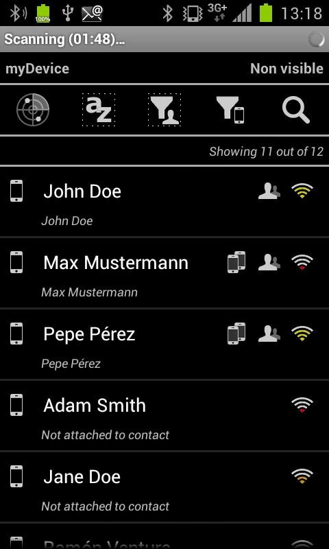 - Сортировка устройств по мощности сигнала, имени и т.д.