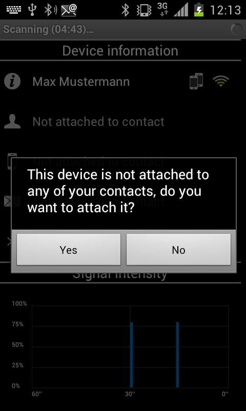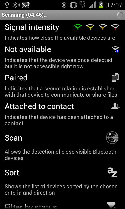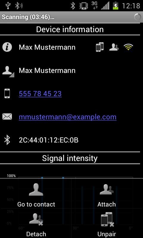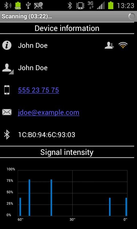 - Если устройство доступно через Bluetooth, во время сканирования вы можете наблюдать, как изменяется во времени, мощность его сигнала.
