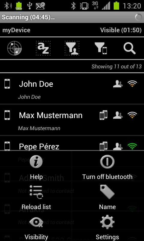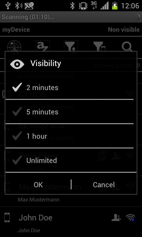 - Сделайте себя видимым до тех пор, пока вам это необходимо, чтобы другие устройства могли найти вас. Примечание: устройство может иметь максимальный предел.
