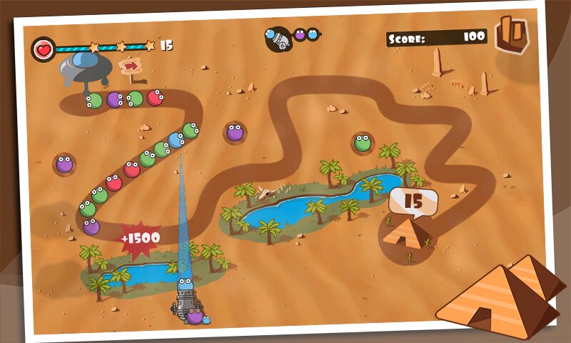 Bubble Blast Мрамор — это стремительно развивающаяся головоломка с цветными шарами, оформленная в мраморном стиле древнего Египта. Цель игры Bubble Blast — Мрамор заключается в уничтожении всех цветных шаров, двигающихся по определенной траектории, до того, как они достигнут пирамиды. Как только один шар достигает пирамиды, вы теряете очки здоровья. Если вы потеряете все очки здоровья, игра будет окончена.