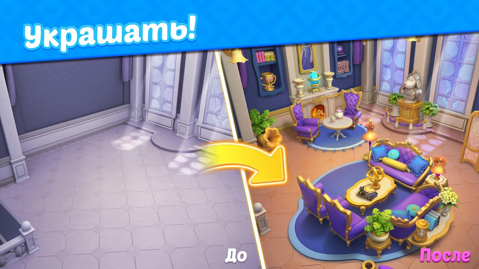 - Множество областей. Исследуйте и украшайте новые помещения, включая королевскую гостиную, фонтан желаний, столовую и многое другое!