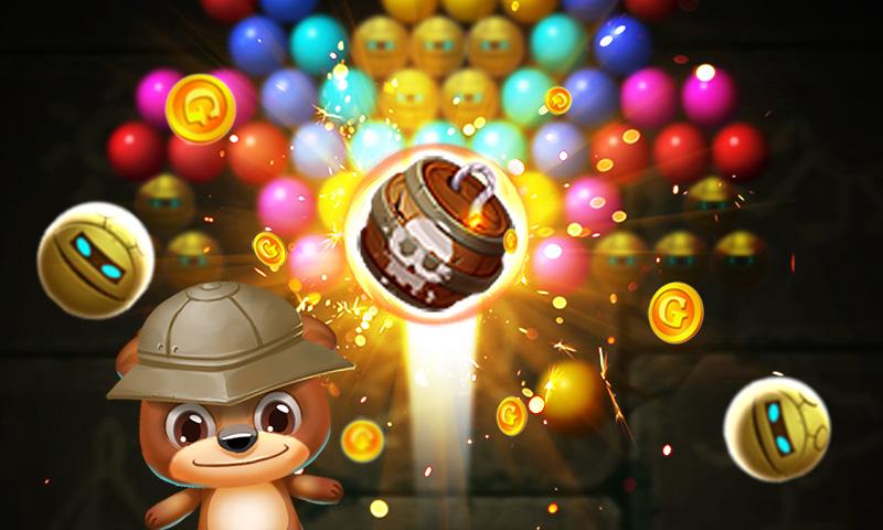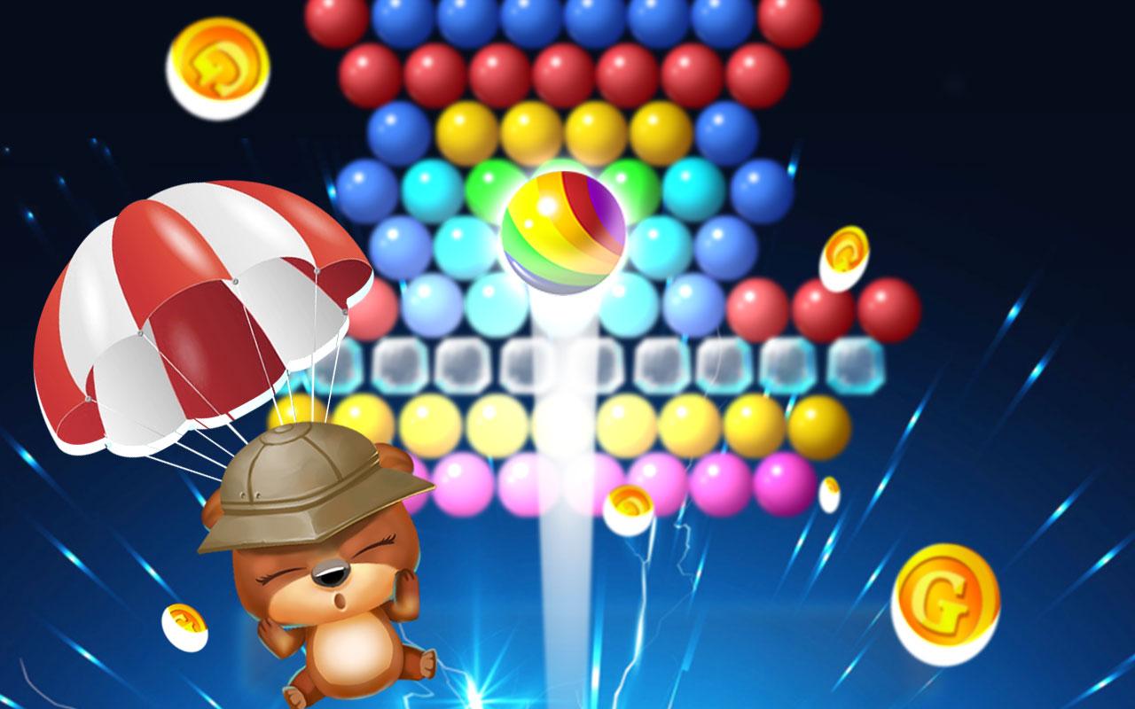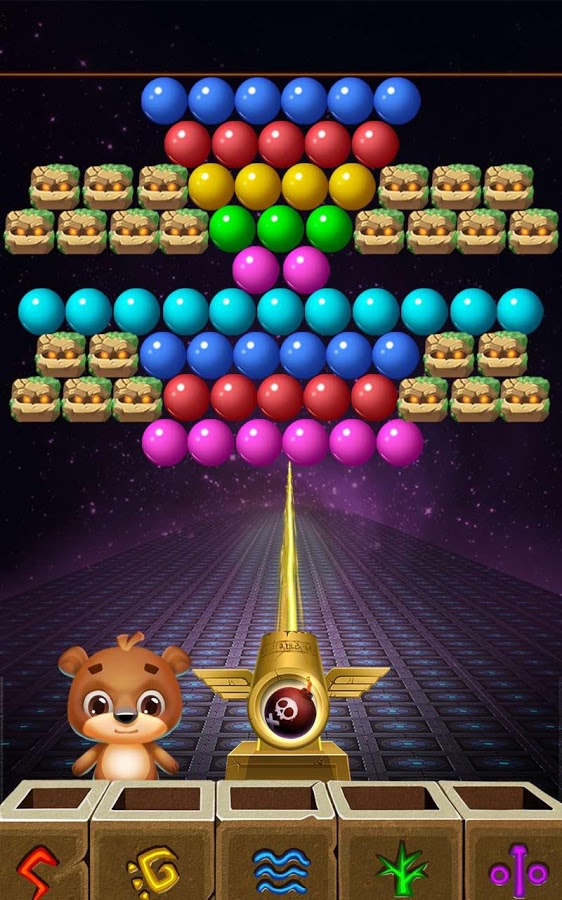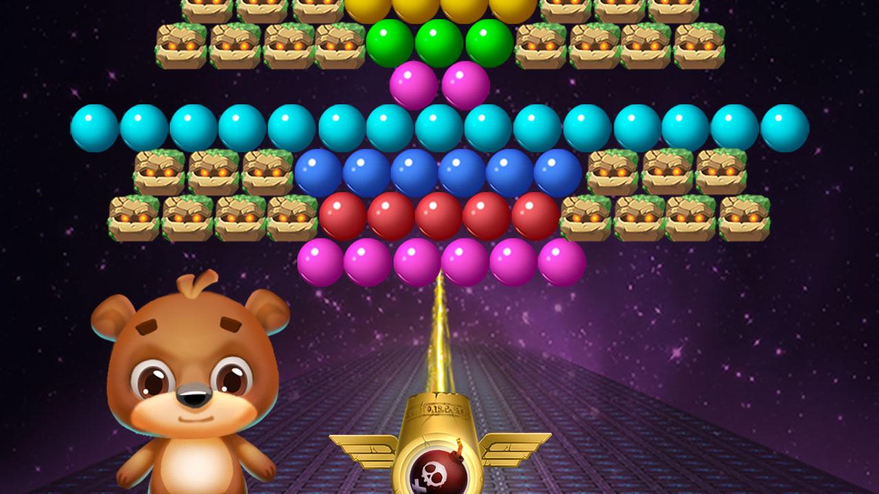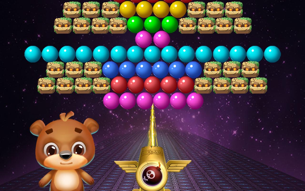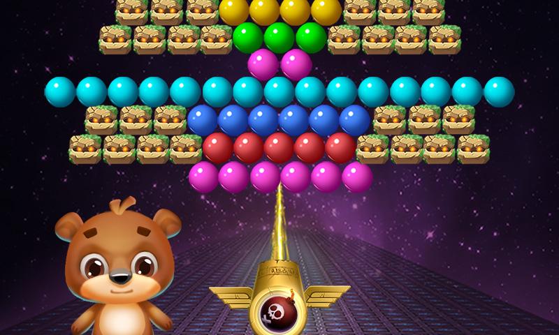 Ваша цель – полностью очистить поле от пузырьков и заработать как можно больше очков. Чем меньше ходов вы будете при этом использовать, тем больше баллов в итоге заработаете. В конце все полученные баллы обмениваются на монетки. Более того, в процессе игры мишка может 7 раз сменить свой внешний вид.
