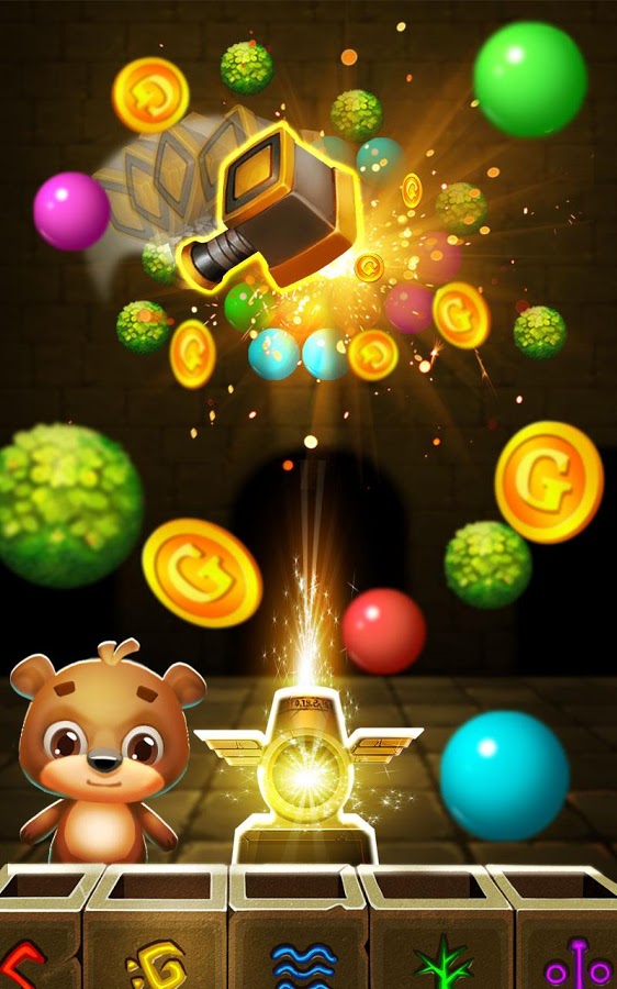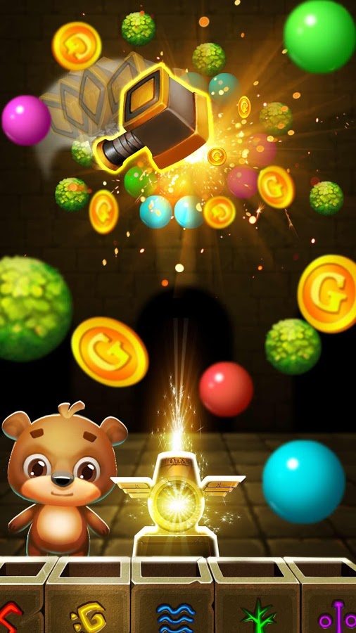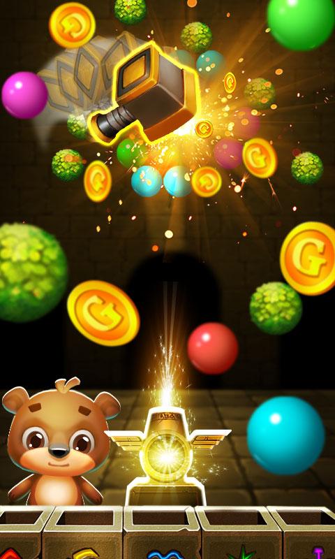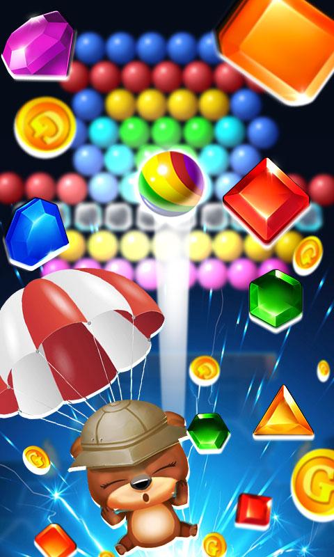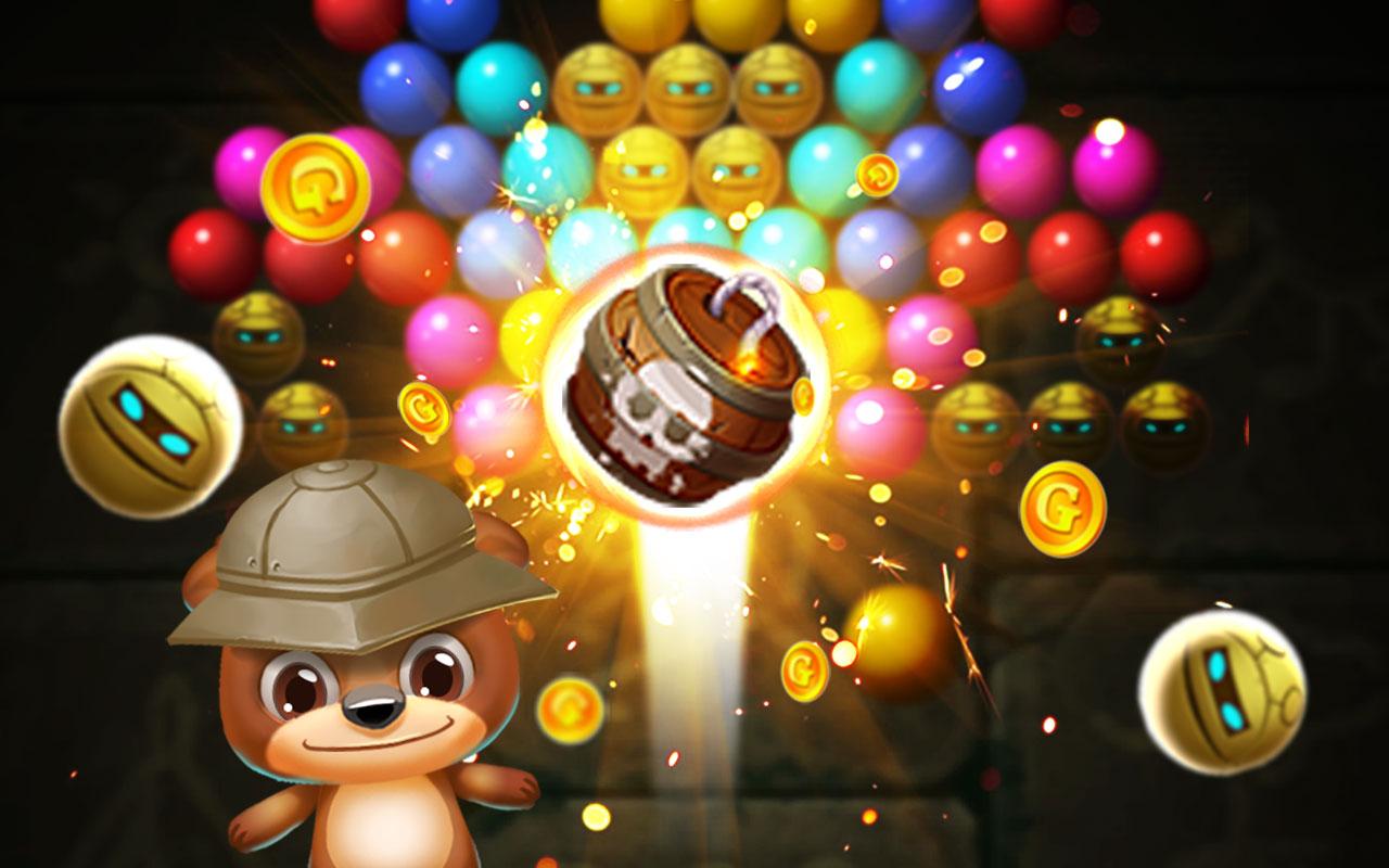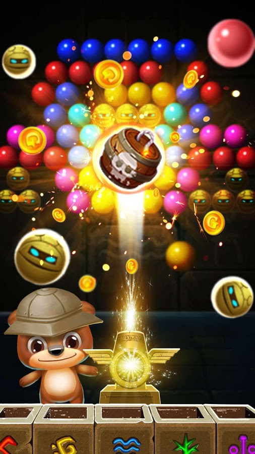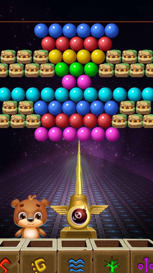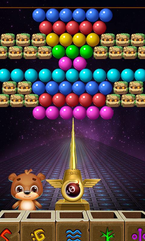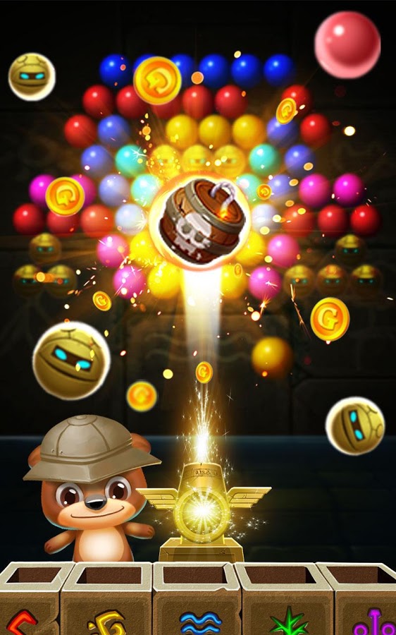 Ваша цель – полностью очистить поле от пузырьков и заработать как можно больше очков. Чем меньше ходов вы будете при этом использовать, тем больше баллов в итоге заработаете. В конце все полученные баллы обмениваются на монетки. Более того, в процессе игры мишка может 7 раз сменить свой внешний вид.