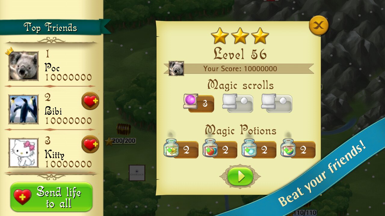 Bubble Witch Saga — это интересная бесплатная аркада-головоломка для Android, в которой мы должны бросать шары в игровое поле и группировать их по 3 штуки и более. При образовании группы таких шаров, они лопаются и падают к нам вниз, попадая в магические котлы, где из них будут сварены различные магические зелья. Игра отличается стилизованной под пластилин графикой, большим количеством уровней и интересным геимплеем.