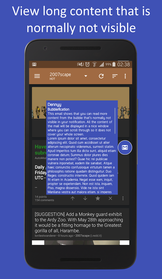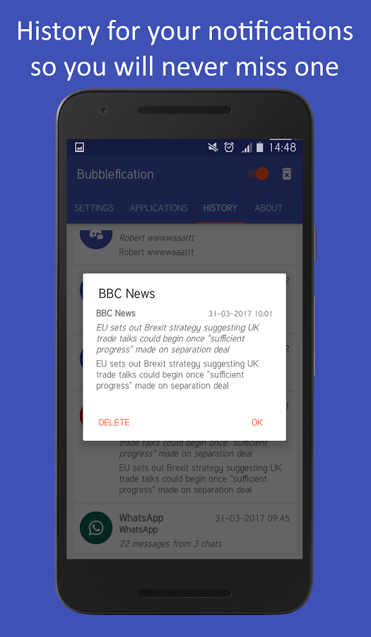 Bubblefication — это новый способ просмотра ваших уведомлений. Он может читать ваши уведомления из любого приложения и отображает их как плавающий пузырь на вашем экране.