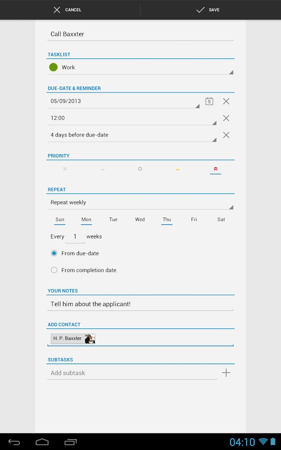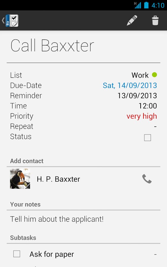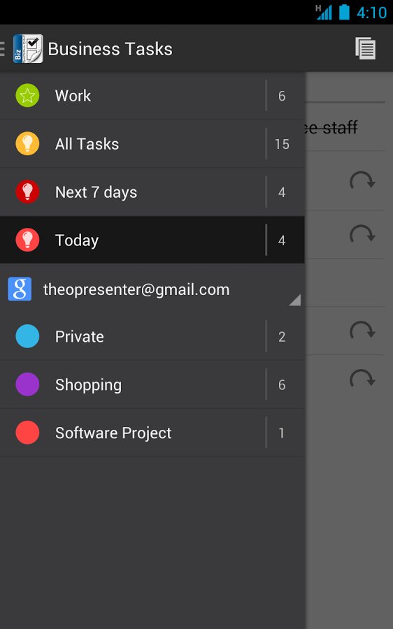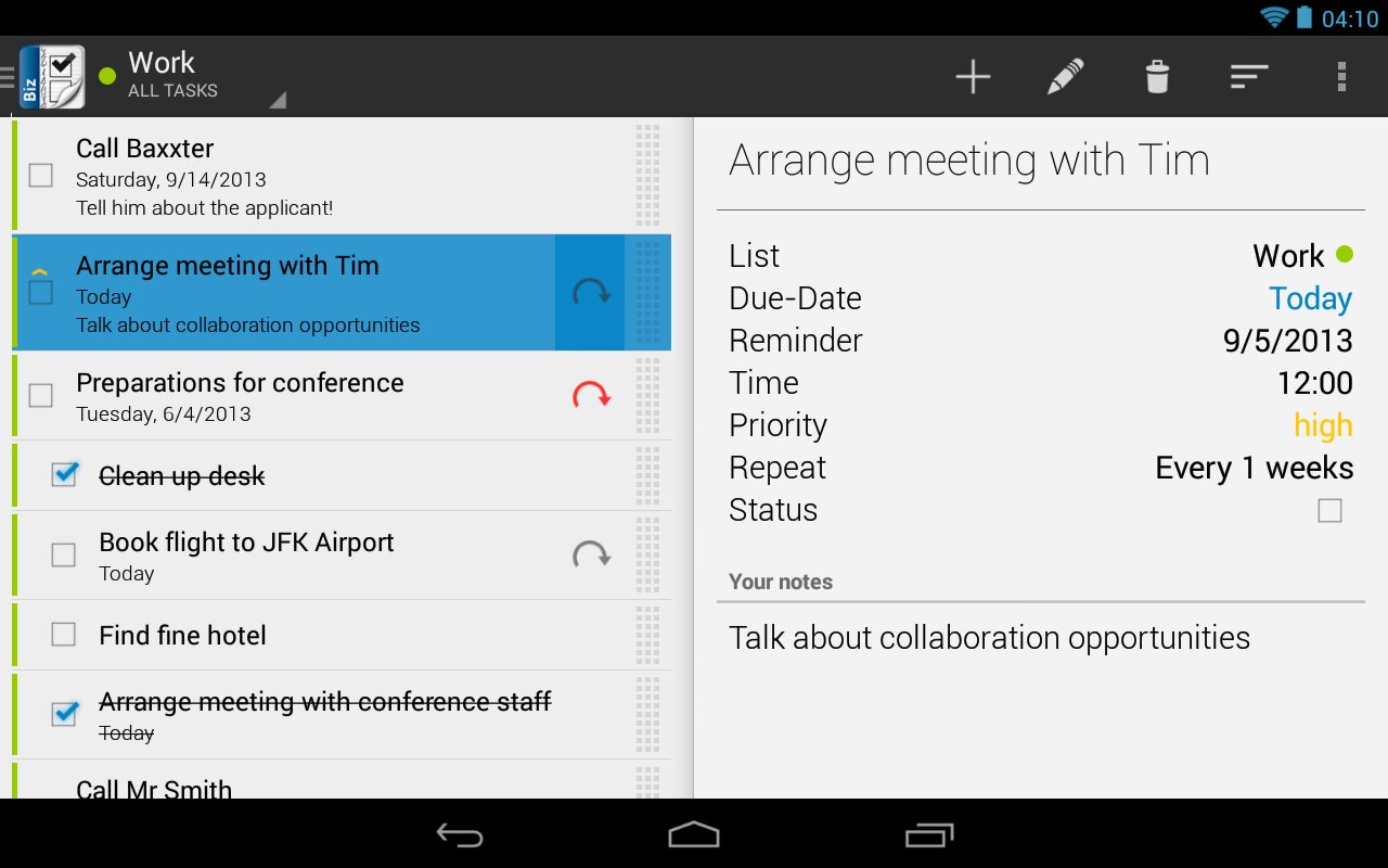 Business Tasks — это полноценный органайзер задач, который синхронизируется с Google Tasks и Toodledo.