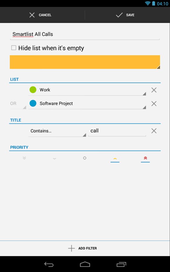 - предопределенные смарт-листы на сегодня, следующие 7 дней и все задачи