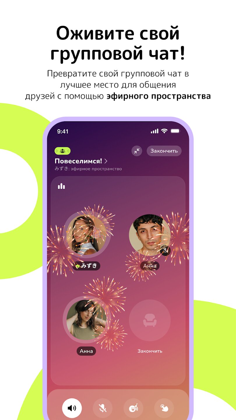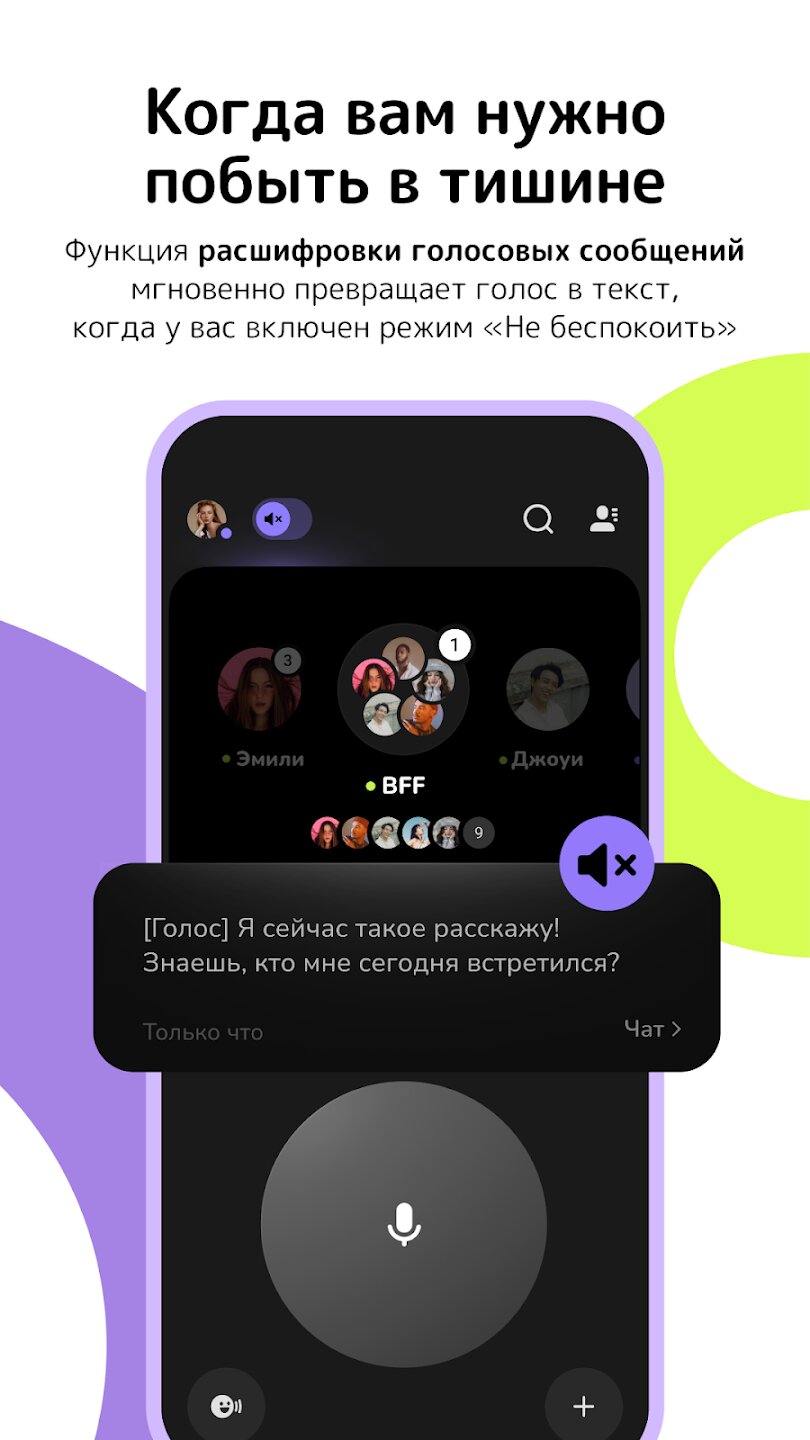 Buz превращает ваши групповые чаты в оживленные живые пространства, где вы можете вместе проводить время. Вы можете настроить свое собственное пространство с помощью цветов, картинок и фоновой музыки, чтобы создать идеальную атмосферу для вашей компании. Функция автовоспроизведения приложения гарантирует, что вы никогда не пропустите ни одного слова от своих близких, мгновенно воспроизводя голосовые сообщения даже при заблокированном телефоне. Для моментов, когда вы не можете слушать, функция преобразования речи в текст обеспечивает мгновенную транскрипцию входящих сообщений простым нажатием.