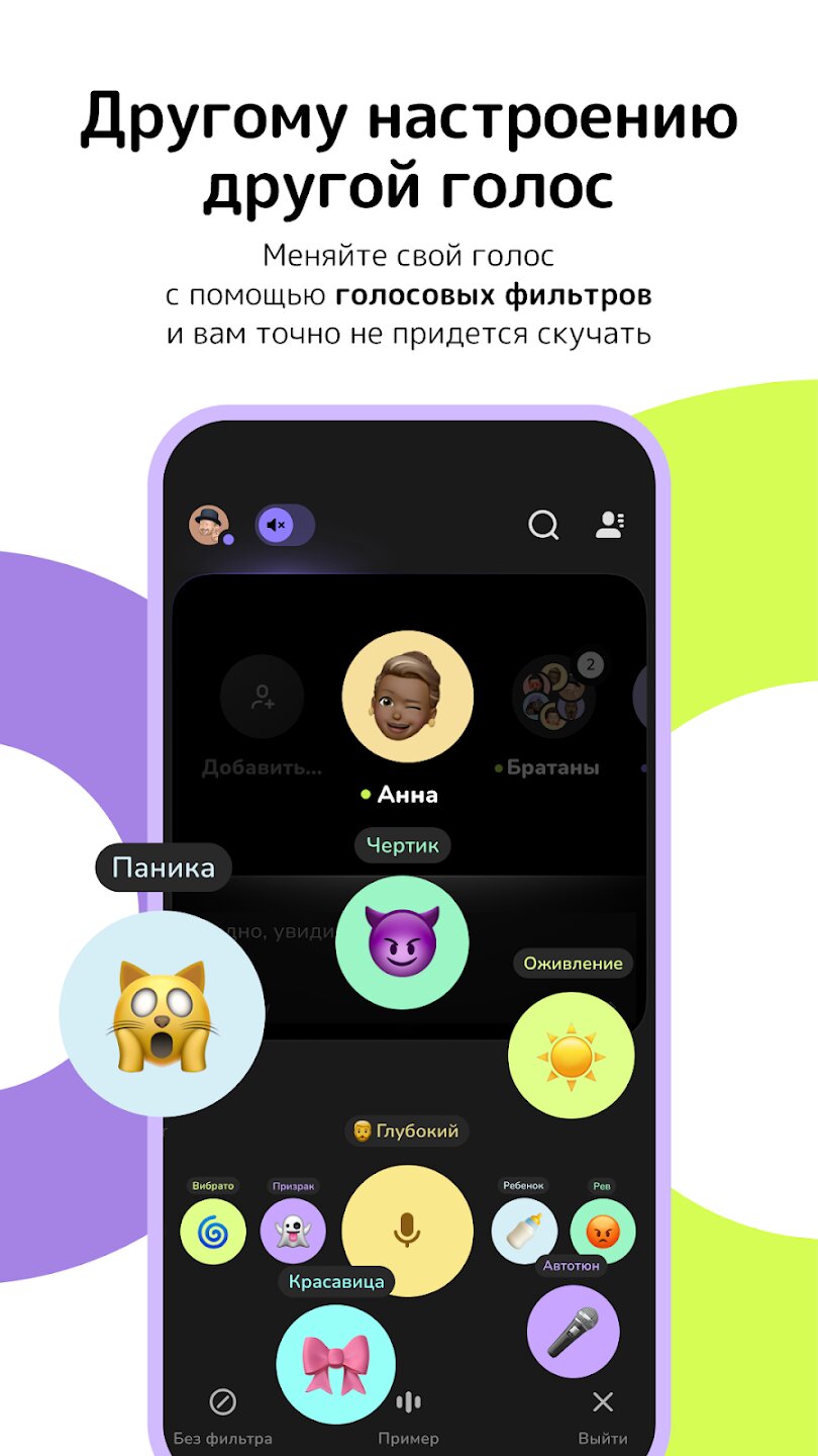 - Голосовые фильтры и эффекты для веселых разговоров.
