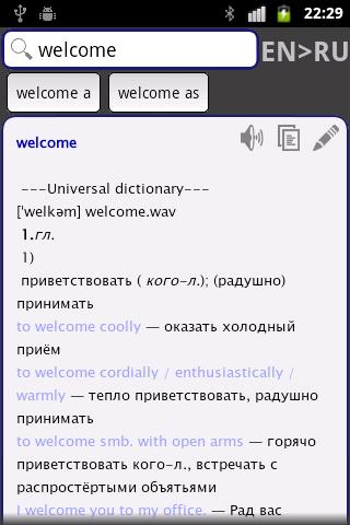 — Словарь легок в использовании и содержит функцию угадывания слов;