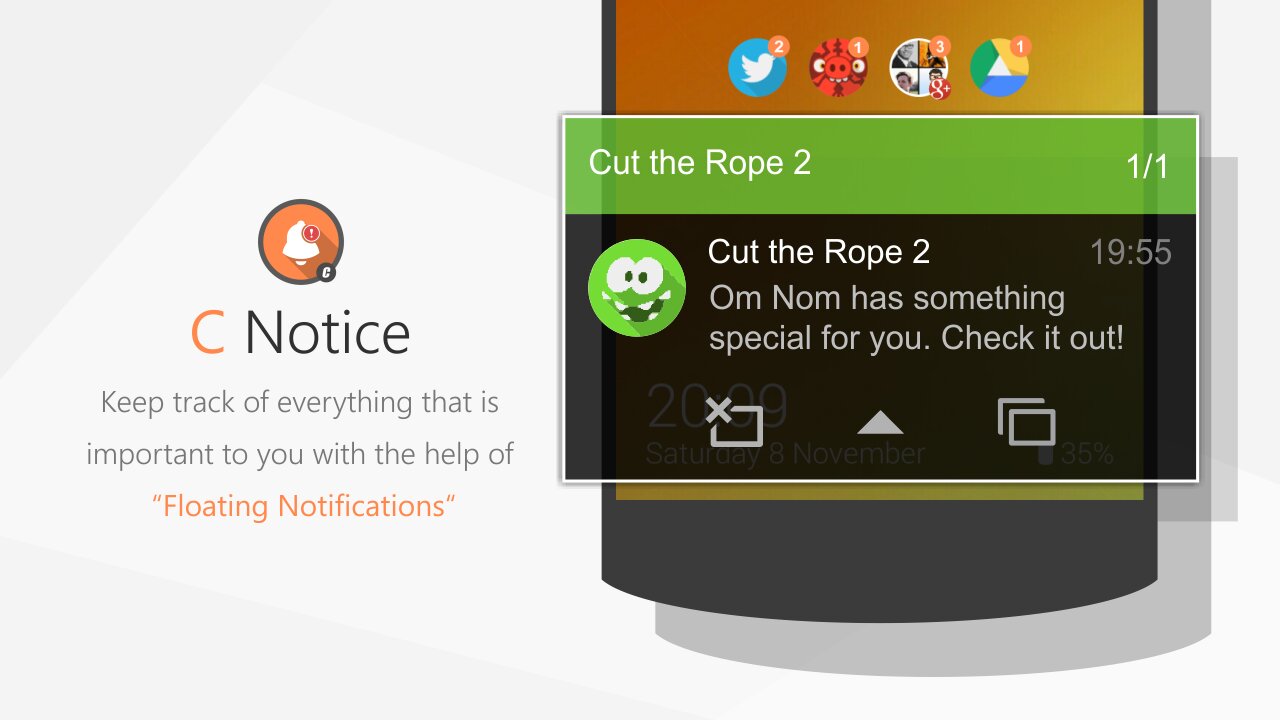 C Notice – это системное приложение для Android, которое выводит поступающие уведомления в отдельном плавающем окне. Оно позволяет четко определить, от каких программ будут отображаться сообщения, что упрощает просмотр всех оповещений. Вторым приятным плюсом является возможность просмотра прямо с экрана блокировки.