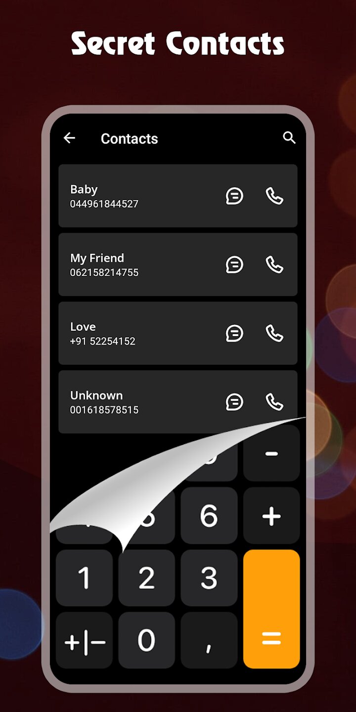 - Полностью замаскированный интерфейс, который выглядит и работает как обычный калькулятор.