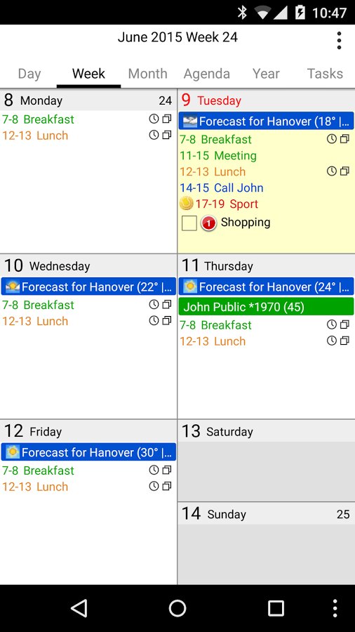 CalenGoo — приложение, которое можно синхронизировать с календарем Android и Google Calendar. Он предназначен, чтобы сделать работу еще проще и быстрее с календарем на вашем телефоне.