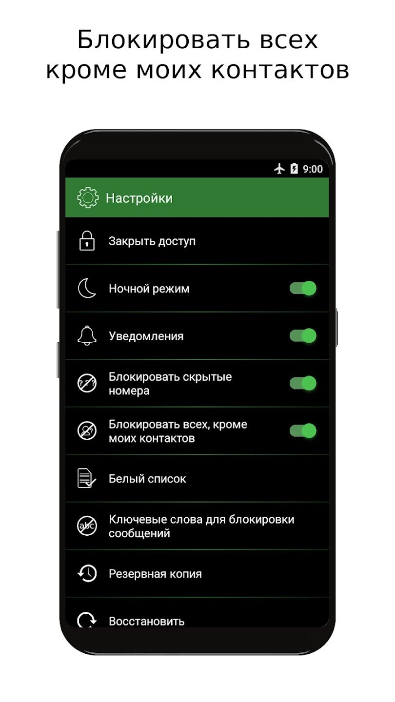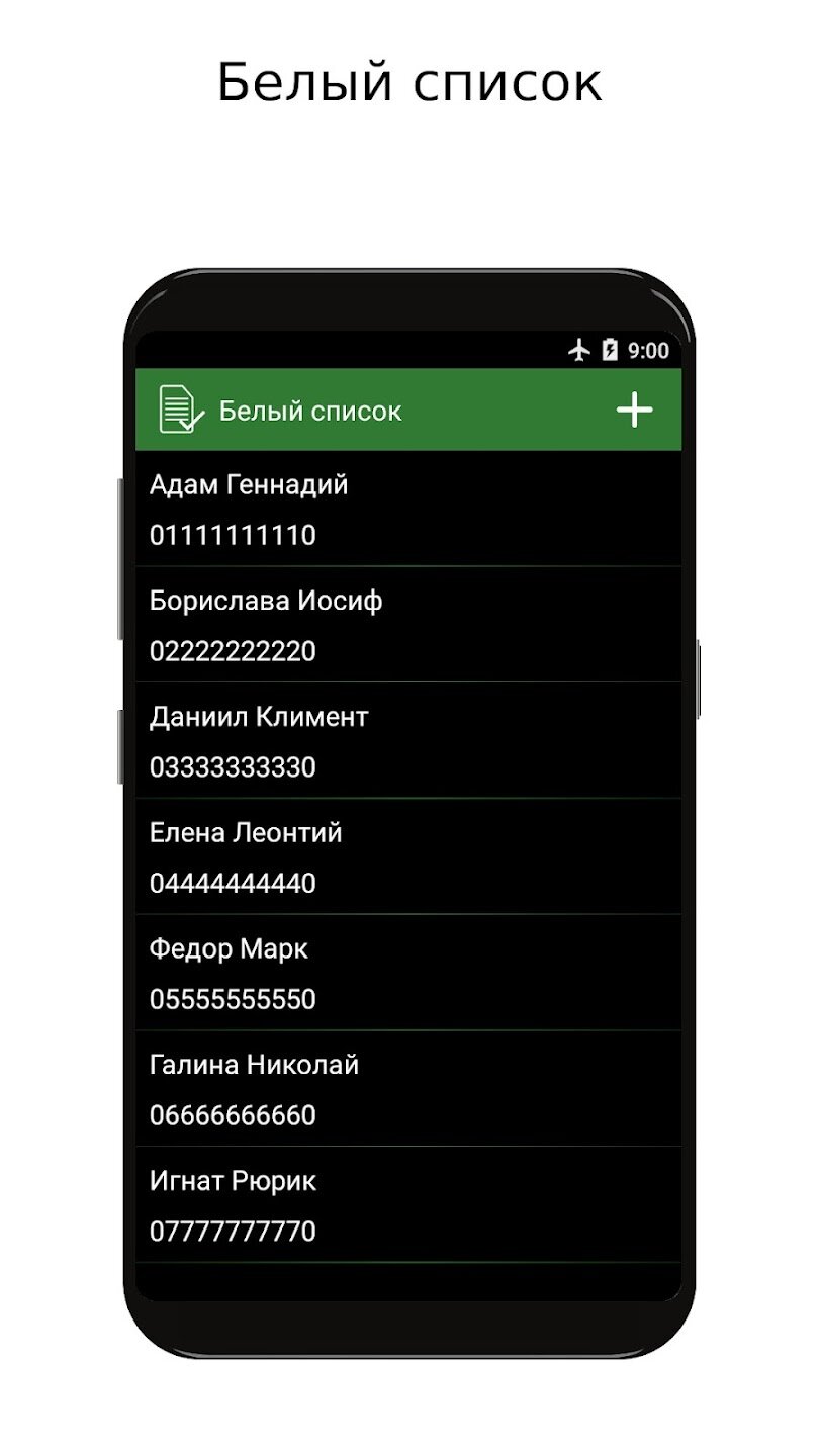 - Белый список для номеров телефонов, которые никогда не следует блокировать.