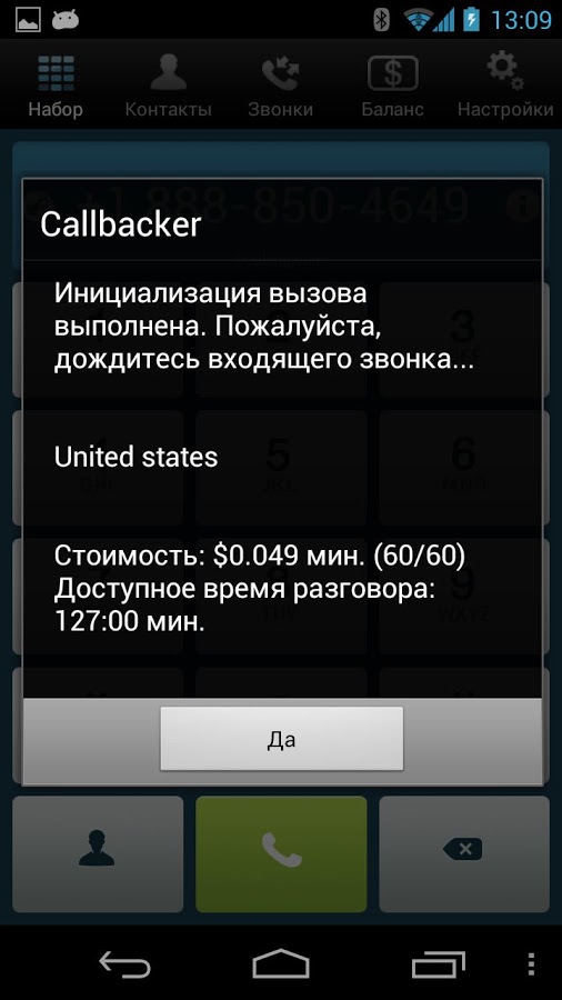 2. Callbacker мгновенно вызовет ваш номер телефона, и вы получите входящий звонок. Ответьте на него.