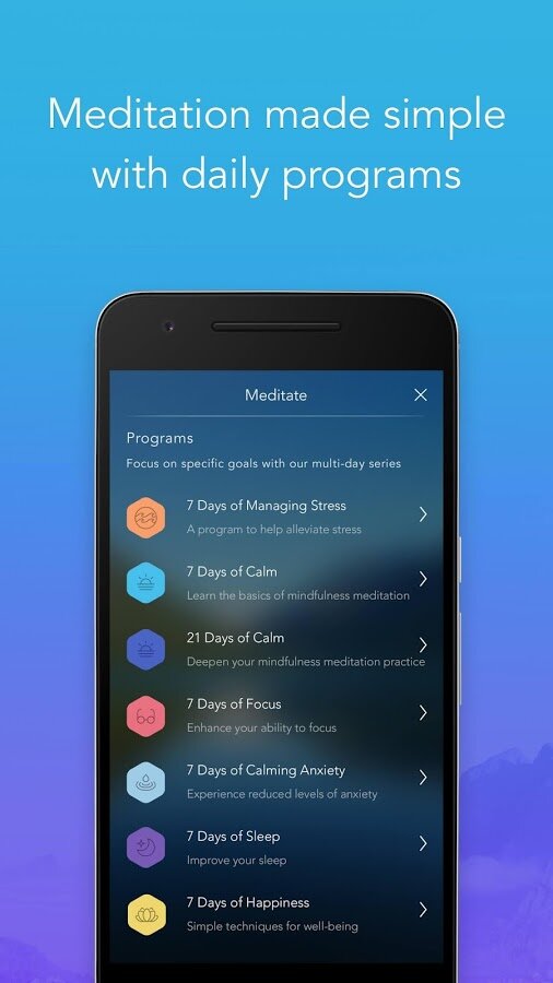 Calm — это приложение для Android, призванное помочь пользователям расслабиться, снять стресс и обрести душевный покой. Благодаря управляемым медитациям, историям сна и расслабляющей музыке это приложение идеально подходит для тех, кто хочет улучшить свое психическое состояние.