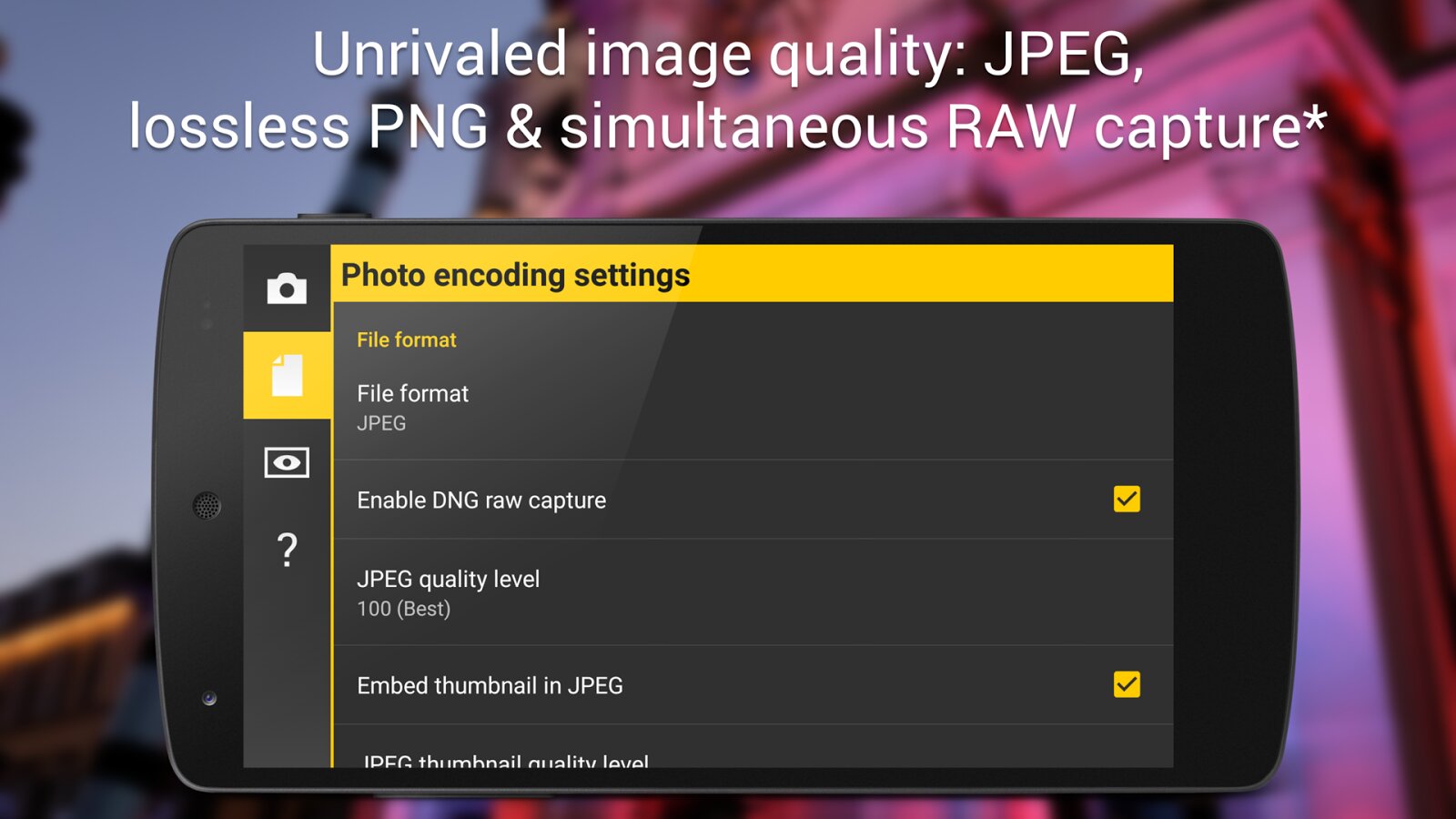Специально для любителей и профессиональных фотографов, с помощью этой камеры приложения вы можете запечатлить самые лучшие фотографии в raw, так что вы можете обработать их позже, и получить потрясающие результаты.Единственным ограничением является ваше воображение и творческие способности!