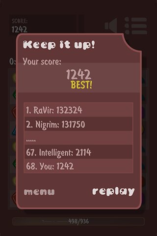 Соберите три или более одинаковых камешка в ряд, чтобы удалить их, и попытаться набрать как можно больше очков за ограниченное время! Станьте лучшим!
