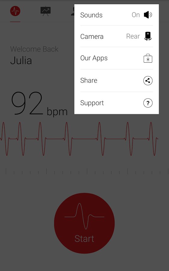 Подсказка: Если вы получаете неправильные данные (или вообще), пожалуйста, попробуйте изменить положение пальца на объективе камеры. Также, пожалуйста, не забудьте делать измерения в хорошо освещенной среде, если устройство не имеет вспышки.