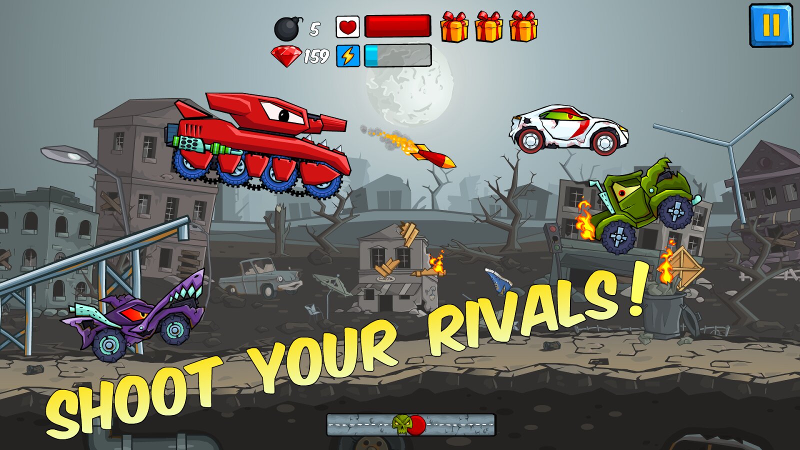 В целом, Car Eats Car предлагает захватывающие и адреналиновые гонки, которые увлекут игроков на долгие часы. Вот некоторые ключевые особенности игры: