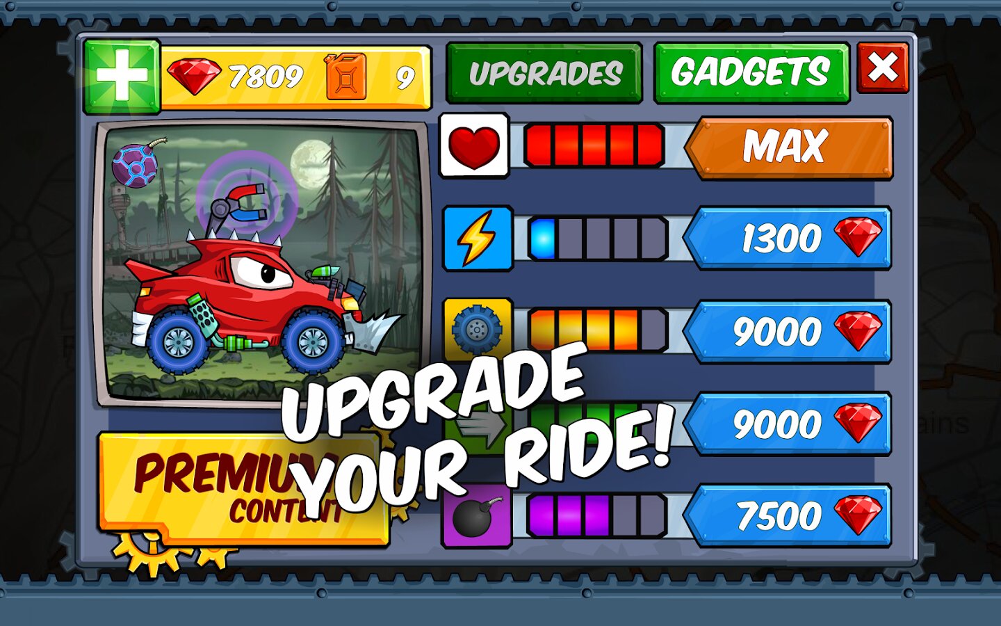 - Модернизируемые автомобили и разблокируемые уровни