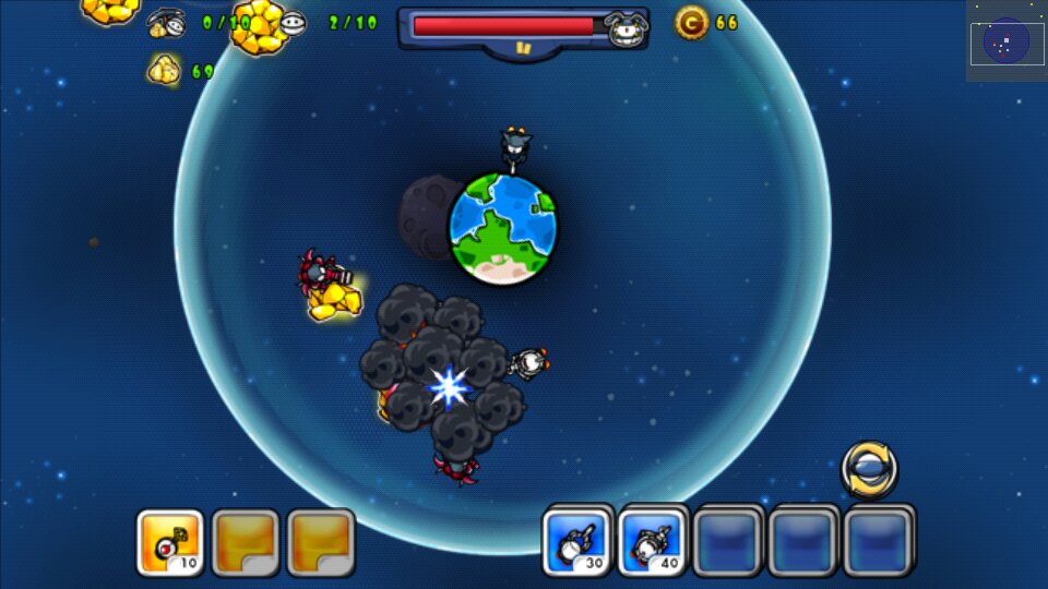 Cartoon Defense: Space wars — это отличная стратегия в реальном времени, в которой от Вас будет зависеть благополучие нашей планеты. Каким-то образом на орбите нашей планеты появились огромные глыбы, состоящие из золота. Естественно, земляне не стали упускать такого шанса и отправили в космос роботов, собирающих золото. Поскольку речь зашла о презренном металле, придется позаботиться не только о его охране и о роботах, делающих нелегкую работу, но и о самой Земле. Собственно, этим Вам и придется заниматься.
