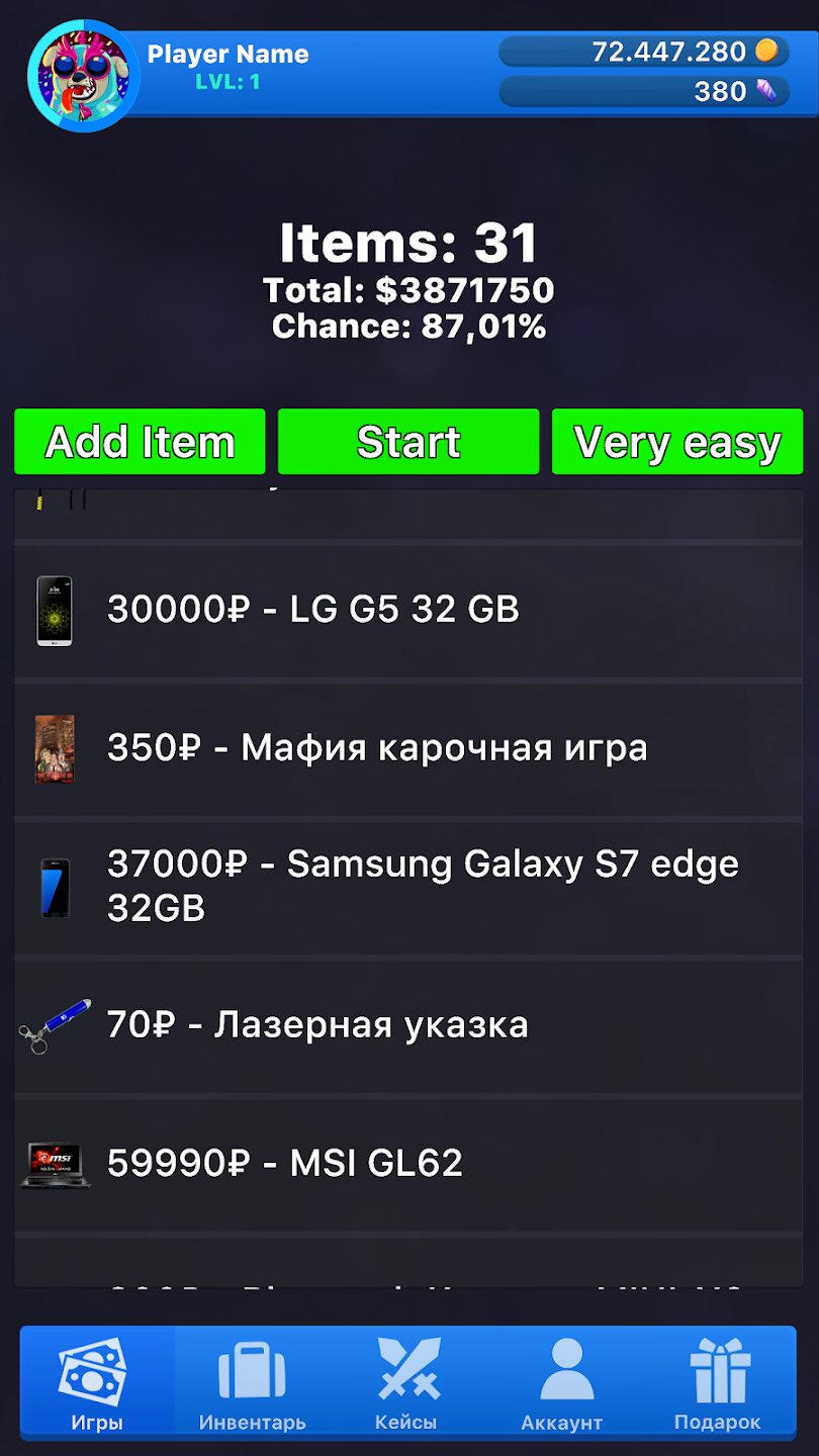 Кейс Симулятор Реальных Вещей 2 дает вам возможность погрузиться в мир виртуальной распаковки, где каждый контейнер хранит неожиданные сюрпризы. Система полностью имитирует процесс открытия реальных кейсов с детализированной анимацией и реалистичными звуковыми эффектами. Вы будете наблюдать, как на экране появляются различные предметы – от электронных гаджетов до уникальных коллекционных вещей, при этом стоимость каждого предмета определяется актуальными рыночными ценами.
