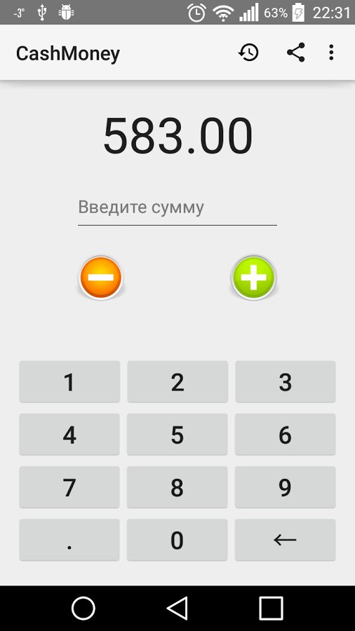CashMoney — это простое и удобное приложение для учета личных денежных средств, для тех кто желает контролировать свои доходы и расходы. Просто, прибавляйте свои доходы или вычитайте расходы и вы всегда будете знать сколько у вас наличных в кармане
