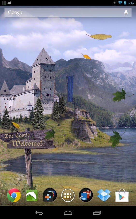 Castle Live Wallpaper Pro — живые обои, на которых вы сможете любоваться на старинный европейский замок, расположенный в красивом месте среди гор и реки. Живые обои имеют множество настроек, смену дня и ночи относительно вашего времени, а также по ручной настройке, возможность включения погодных условий в виде дождя и штормового порыва ветра при встряске планшета. Вы сможете изменить практически каждую деталь живых обоев и создать живую картину под свое настроение. Вы сможете вывесить флаг некоторых стран возле замка, включая российский.