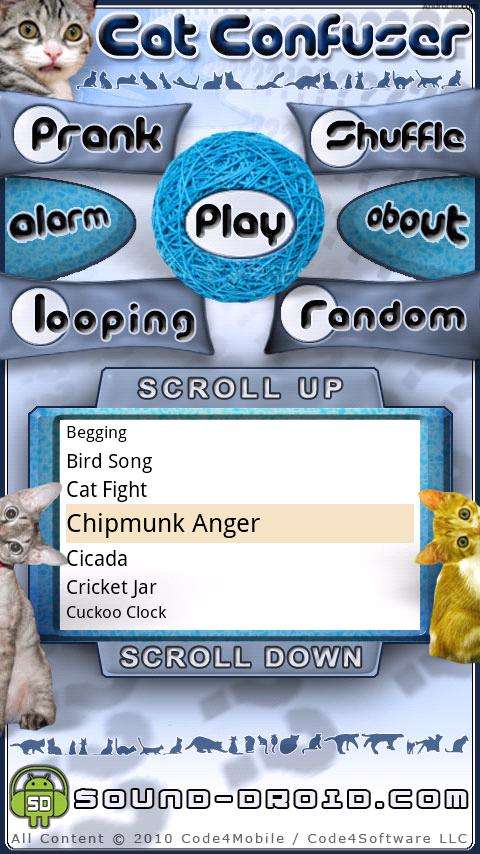 Cat Confuser — приложение для тех, кто любит котов. По сути в нем собран набор звуков, которые могут заставить кота реагировать самым неожиданным образом. Обязательно попробуйте на вашем питомце и получите удивительный результат.