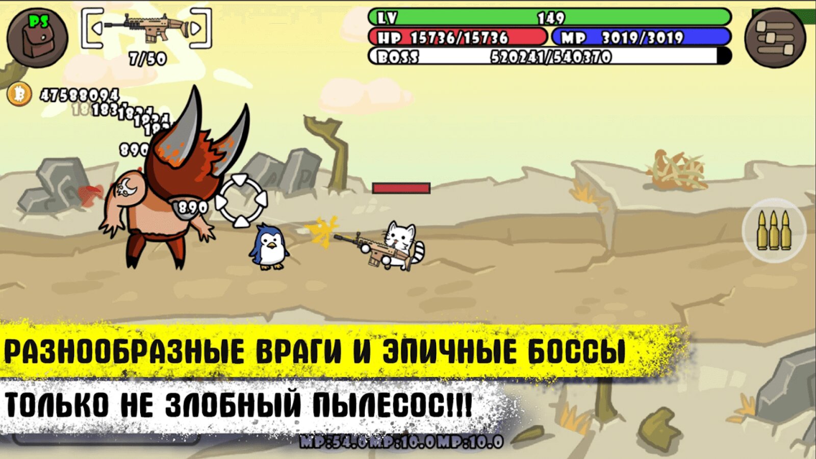 Каждый котик и кэт обладает особыми боевыми навыками, а некоторые даже используют магию и паркурят. Более того, в нашей эпичной офлайн игре ты можешь менять амуницию, шлемы, аркады и броню своих героев, создавать отряды боевых котят, а также добывать новые боеприпасы. Помимо битвы, стрельбы и эпических offline батлов, ты будешь также основывать новые platformer базы и заботиться об их жителях — строить здания и улочки в разных стилях, как самый настоящий эпический герой кошек, аркады и лучших стрелялок.