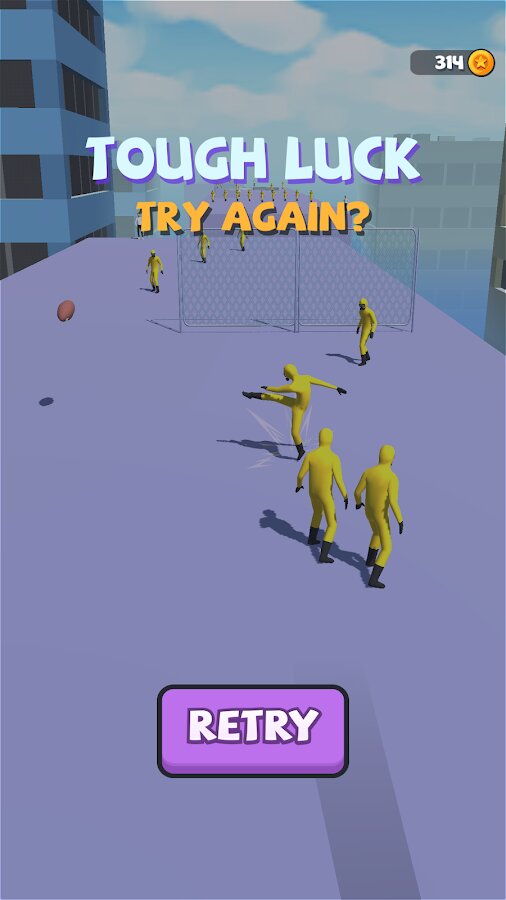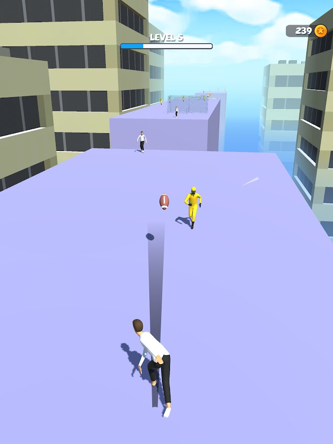 Игра Catch And Shoot позволяет играть в футбол не на привычных стадионах, а на крышах большого города. Ваша задача заключается в том, чтобы передавать мяч другим игрокам команды, достигать поставленных целей и получать монеты. Механика игры очень простая -управляйте игроком водя пальцем по экрану. Оттачивайте своё мастерство и ловко избегайте ловушек.