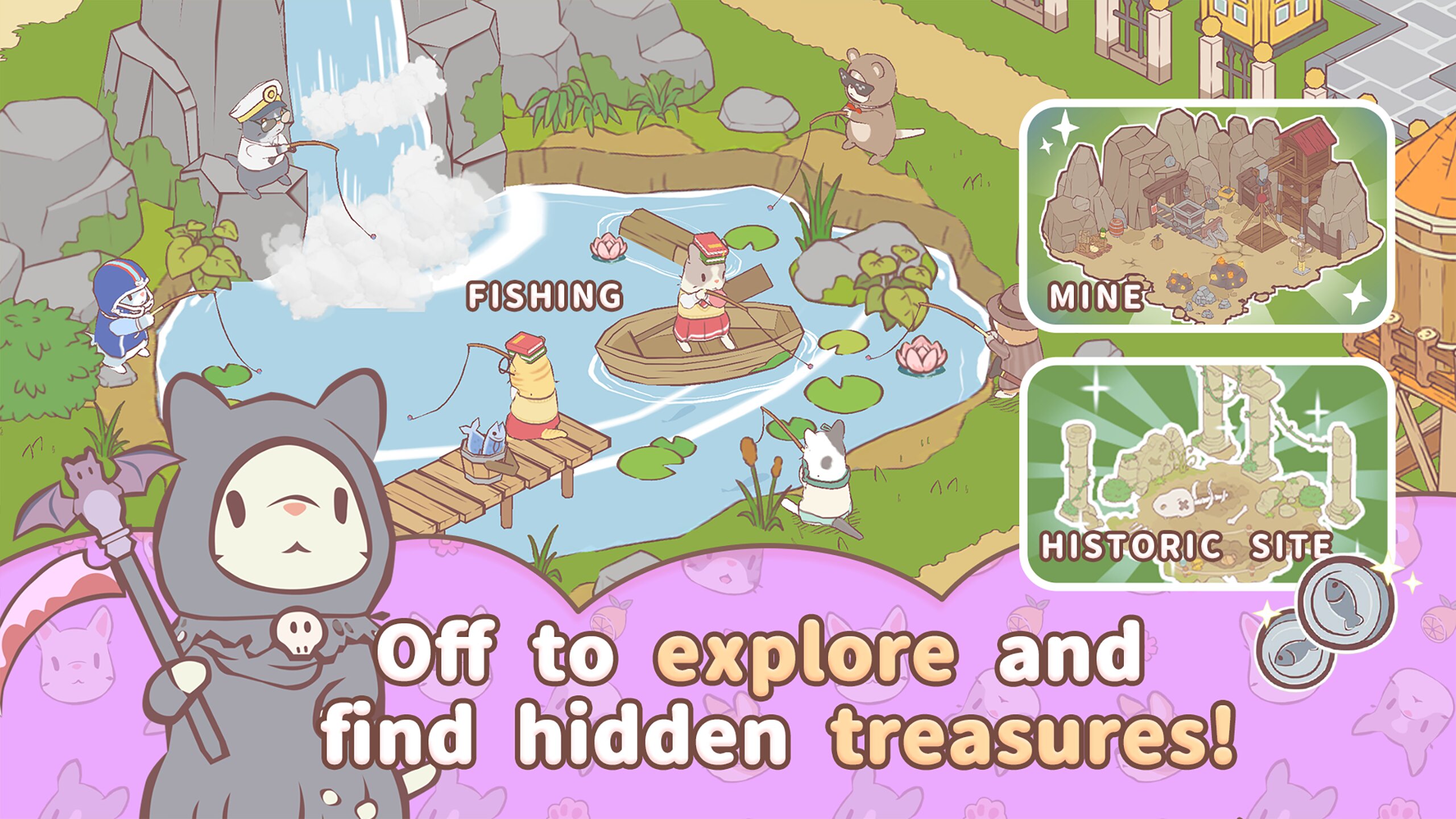 Постоянно появляются новые занятия для ваших питомцев. Отправляйте котов в исследовательские экспедиции к таинственным прудам или в глубины пещер, где они могут найти редкие ресурсы и секретные рецепты. Навещайте фермы своих друзей, чтобы обмениваться подарками и перенимать идеи для украшения. Ежедневные задания от забавных торговцев-животных помогут вам получить уникальные награды и специальные костюмы для ваших любимцев.