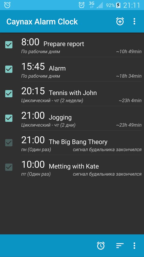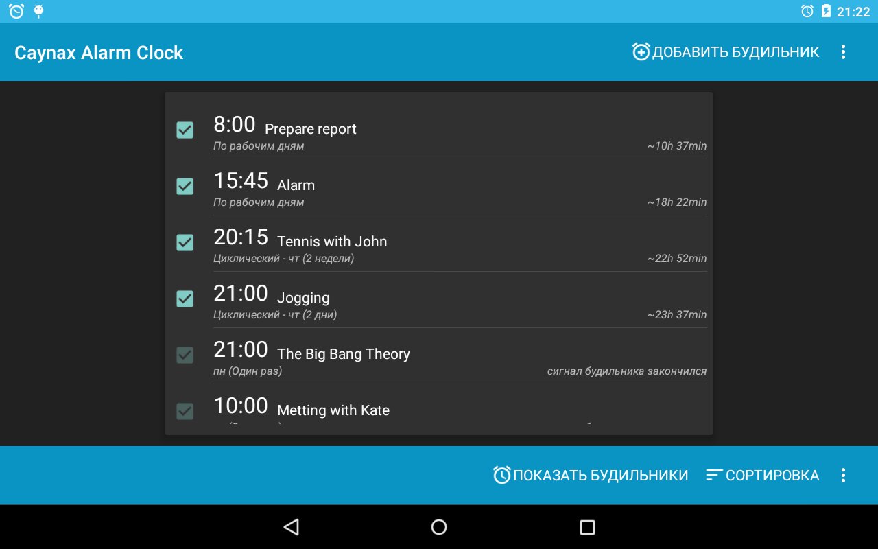 Caynax Alarm Clock — это отличное решение для планирования, списков дел, списков задач или напоминания о задачах.