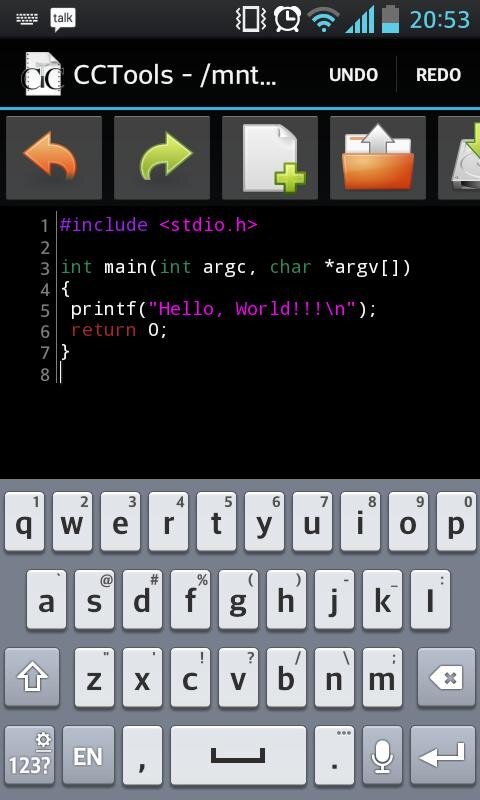 Редактор с подсветкой синтаксиса, полноценный компилятор c/c++, создание консольных приложений и приложений NativeActivity.