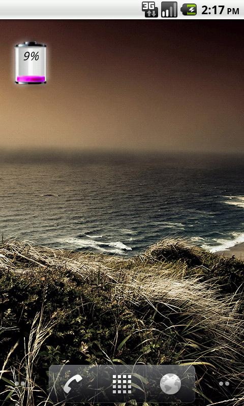 Красивый виджет небесного цвета, отображающий текущий уровень заряда батареи вашего устройства. Нажав на виджет, вы сможете изменить индикатор батареи на индикатор яркости дисплея, WiFi, GPS, настроек Bluetooth, а так же позволяет установить будильник.