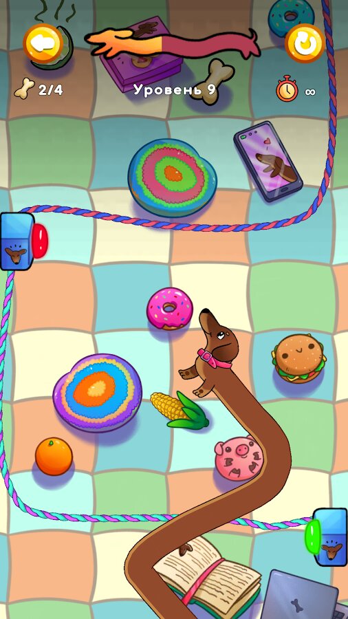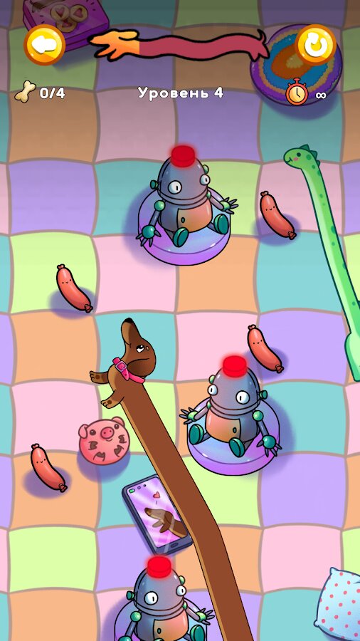 - Проведите палец по экрану, чтобы вытянуть собаку;