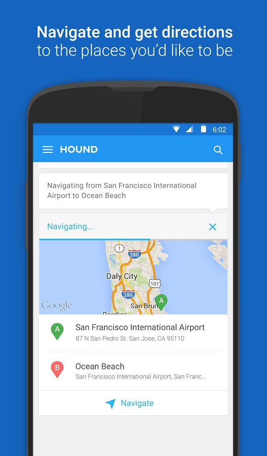 «Привет, SoundHound… Покажите мне отели в Сан-Франциско на завтра, где можно остановиться на 2 ночи по цене от 200 до 300 долларов за ночь, где разрешено проживание с домашними животными, есть тренажерный зал и бассейн?»… «Теперь отсортируйте по самой низкой цене, но не меньше чем 250, и не показывать ничего, у чего нет Wi-Fi». Или: «Привет, SoundHound… покажи мне кофейни с Wi-Fi»… «Какие из них находятся в нескольких минутах ходьбы и открыты после 21:00 по воскресеньям?»