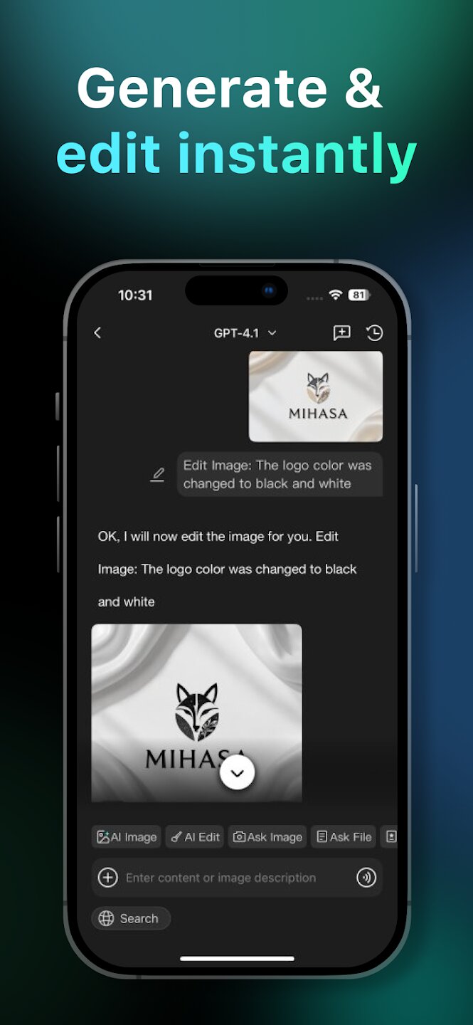 Помимо генерации текста, приложение отличается визуальной креативностью. Его уникальный диалоговый интерфейс позволяет создавать и редактировать изображения, просто описывая то, что вы хотите, как будто разговариваете с другом. Оно оснащено специализированными инструментами, такими как NanoBanana для высококачественной генерации изображений и расширенного редактирования, а также видеоредактором на базе искусственного интеллекта, который преобразует ваши фотографии в динамичные короткие клипы.