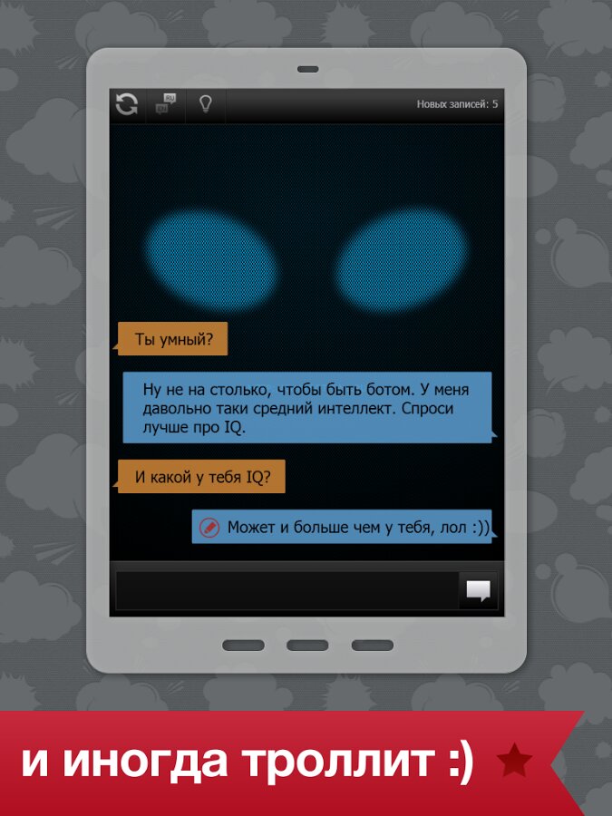 Приложение отличается также тем, что оно представлено в формате бота, а это значит, что пользователю также дана функция общения и обратной связи с ним. Помимо этого, Чатбот robot постоянно находится в процессе модернизации, и проходит непрерывное обучение от каждого его пользователя. Также бот может не только писать ответы на заданные вопросы, но и также воспроизводить их в звуковом режиме. Кроме всего этого, пользователь сможет выражать свое мнение касательно полученного ответа от бота – и если он не понравился, то голосуйте отрицательно и бот будет исправляться.