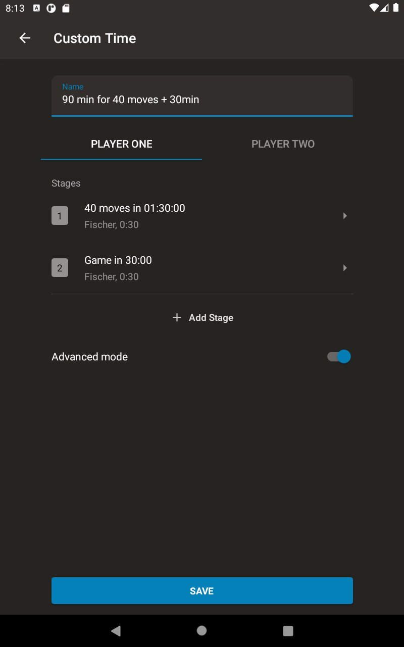 Chess Clock — это бесплатный полнофункциональный таймер для игр, разработанный для замены традиционных шахматных часов. Это полезное приложение предлагает лаконичный интерфейс без рекламы с большими, удобными для нажатия кнопками, что позволяет легко управлять временем во время игры. Оно поддерживает широкий спектр режимов контроля времени, от простых задержек до сложных многоэтапных турнирных форматов, что делает его идеальным помощником как для обычных игр, так и для серьезных матчей.