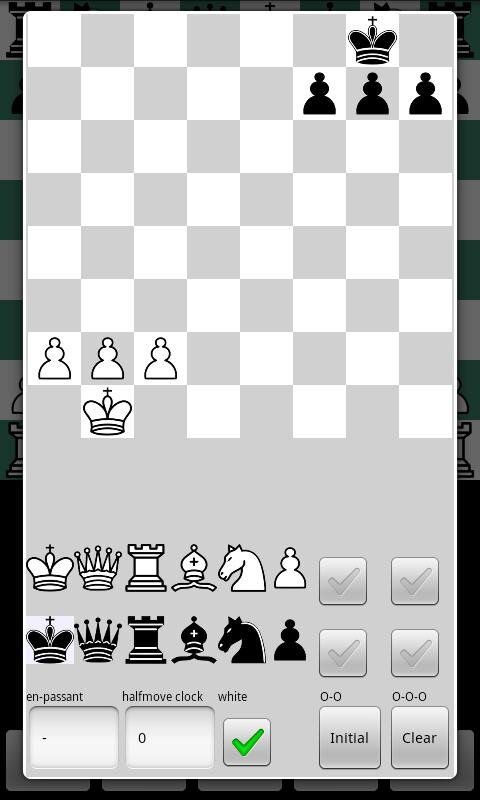 Chess for Android — состоит из шахматного движка и графического интерфейса. Приложение принимает ходы через сенсорный экран, трекбол или клавиатуру (e2e4 толкает королевскую пешку, e1g1 рокирует королевский фланг и т. д.). Необязательный «тренер движений» выделяет действительные движения пользователя во время ввода и последнее сыгранное движение двигателя. Полная игровая навигация позволяет пользователям исправлять ошибки или анализировать игры. Игры импортируются и экспортируются как FEN/PGN в буфер обмена и из него или через общий доступ, загружаются и сохраняются в виде файла или настраиваются с помощью редактора позиций. Ничья из-за пата, недостаточный материал, правило пятидесяти ходов или троекратное повторение признаются. Движок играет на различных уровнях (в том числе случайных, против самого себя в авто-игре или свободной игре, где игру можно использовать как «магнитную шахматную доску»). Пользователь может играть за любую сторону и независимо рассматривать доску с точки зрения белого или черного цвета.