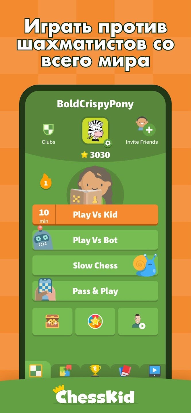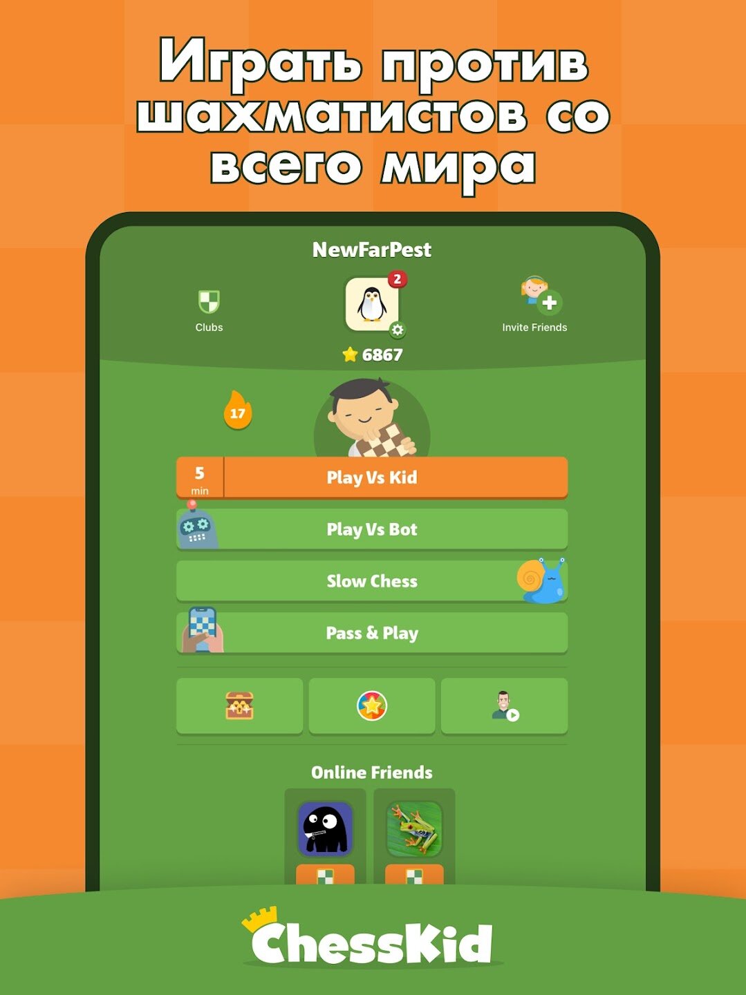 ChessKid — это безопасная шахматная платформа без рекламы, разработанная специально для детей, родителей и тренеров, чтобы они могли учиться и играть в игру королей. Будь то онлайн или офлайн, против друзей или красочных мультяшных ботов, это приложение предлагает полноценный шахматный опыт в 100% защищенной среде. Никакой назойливой рекламы, никаких посторонних — только чистое, соответствующее возрасту стратегическое удовольствие.
