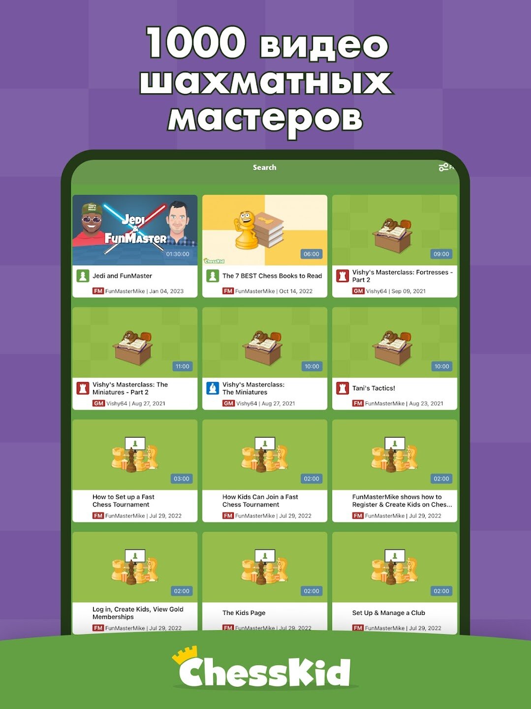 Юные игроки могут в любое время принять участие в бесплатных онлайн-матчах, сражаясь с тысячами других детей со всего мира или участвуя в дружеских турнирах. Предпочитаете играть в одиночку? Десять шахматных ботов с настраиваемыми уровнями сложности станут идеальными партнерами для тренировок. Приложение также содержит более 350 000 тактических головоломок — три бесплатных ежедневных задания помогут отточить навыки распознавания паттернов и вычислений. Для более глубокого обучения веселый тренер Майк Кляйн проводит увлекательные видеоуроки, в которых разъясняет дебюты, эндшпили и продвинутые стратегии так, чтобы детям было действительно интересно.