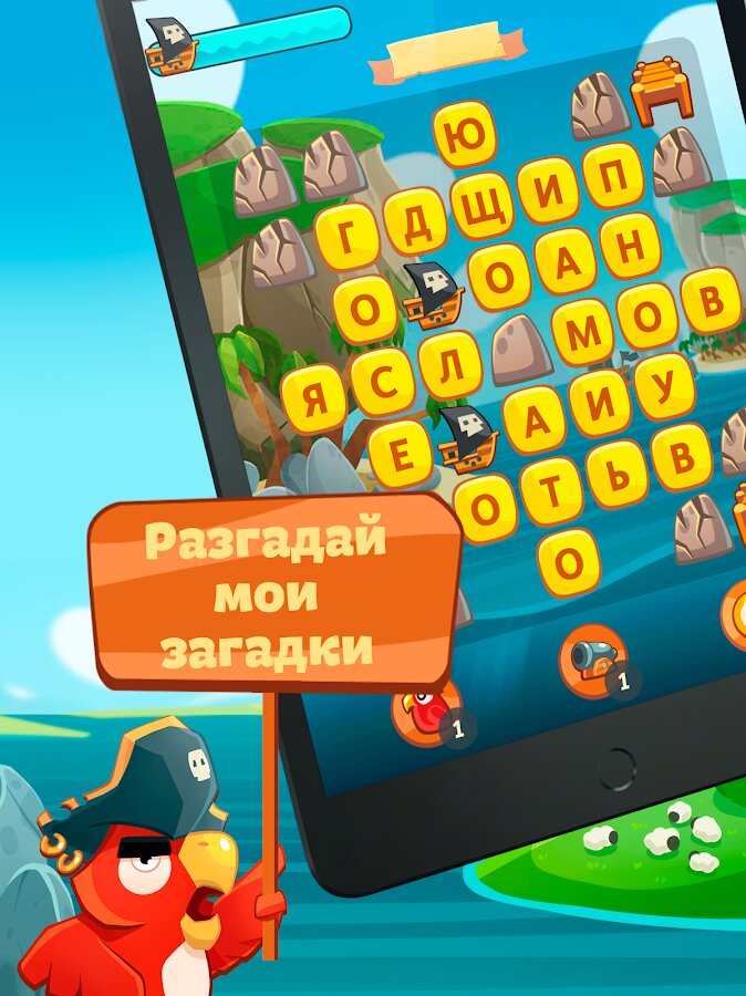 Правила игры просты: ищи и собирай слова из букв, расположенных на игровом поле. Количество ходов на уровне ограничено, а попугай-пират придумывает все более сложные задания.