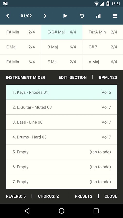 Chordbot — карманный аккомпаниатор для создания и воспроизведения сложных табулатур на смартфоне или планшене. Просто добавьте аккорды, выберите стиль и запустите поспроизведение. Приложение отлично подходит для экспериментов при создании музыки или просто для развлечения. Создавайте аранжировки и миксы просто выбирая из сотен инструментов.