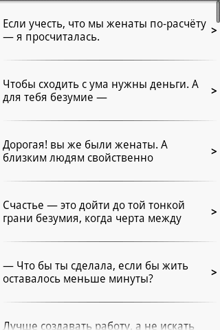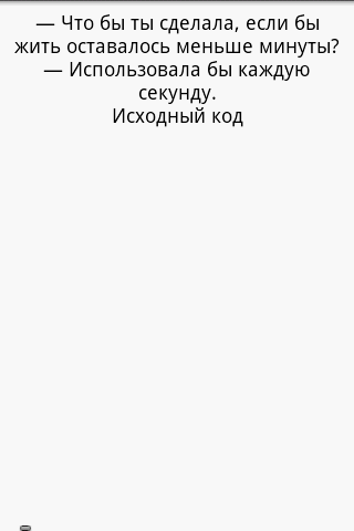 Цитаты 1.0 Приложения / Android / Хобби Скачать на Трешбоксе Android 2.1+ Сборник лучших цитат мира. Особенности: множество разных категорий ночной и дневной режим оформления закладки можно отправить лучшую цитату друзьям Обновлено: 19 августа 2012, 15:10. xazar123 Пользователь Комментариев пока нет Оставьте комментарий...