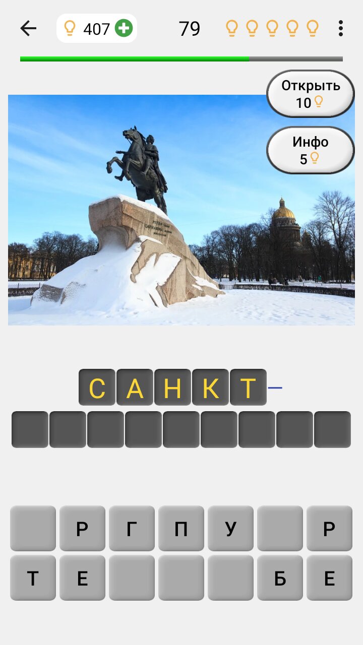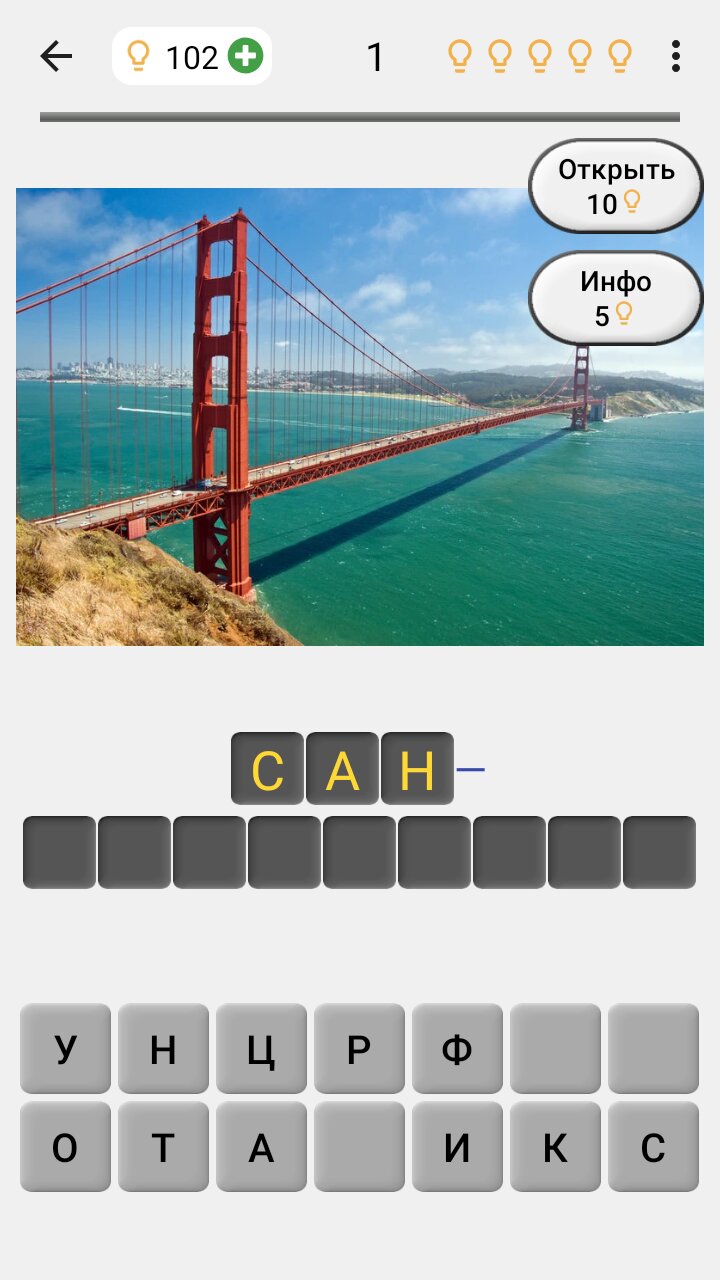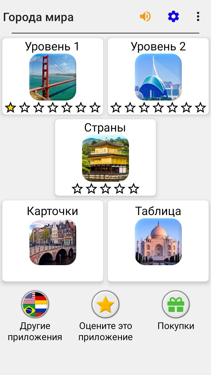 - 220 городов с фотографиями достопримечательностей на трех уровнях сложности.