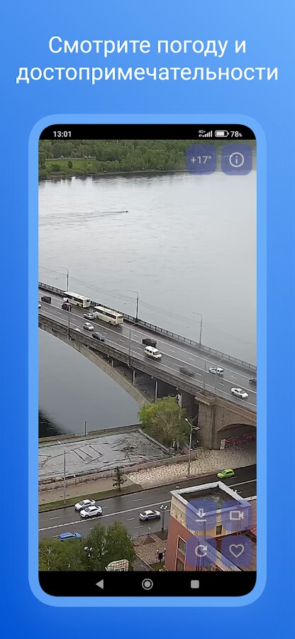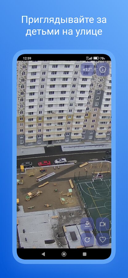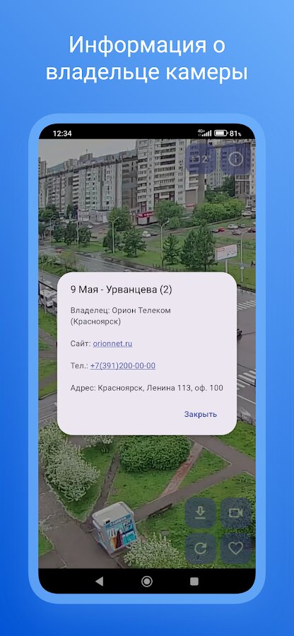 City Cam 24 – приложение для быстрого и удобного доступа к общедоступным камерам видеонаблюдения городов (список ниже). Для экономии трафика помимо просмотра видео доступны скриншоты с камер. Раздел избранных камер. Зум для видео и скриншотов. Информация о камере (владелец, сайт, телефон, адрес). Температура воздуха. Смотрите загруженность дорог, свой автомобиль на парковке, погоду и достопримечательности.