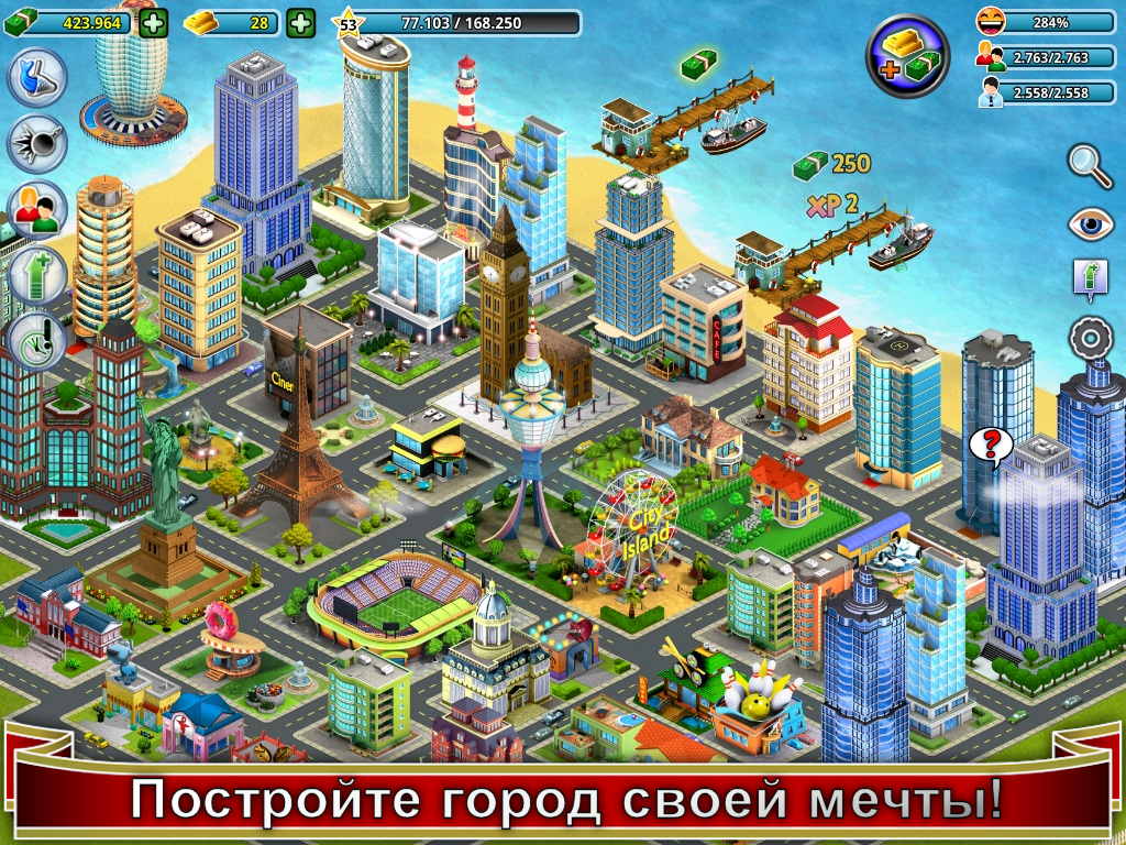 City Island — игроку предстоит выстроить большой мегаполис, начиная маленького домика и десятка метров асфальтированной дороги. Сначала начинаем формировать инфраструктуру, обеспечивая граждан рабочими местами и жилыми домами. Естественно через какое-то время сооружения становятся все выше, рабочих мест становится тоже больше, помните о культурных развлечениях и о духовном развитии своих горожан. Заботу об экологии тоже никто не отменял, следовательно, не забывайте строить скверы и сажать кустарники и деревья. Ваш мегаполис расположен в прибрежной зоне, поэтому придется подумать и о рыбаках, а в ответ они помогут своему заботливому градоначальнику финансово. City Island v2.8.4 является прекрасным представителем своего жанра. Игра имеет в активе 1000000+ скачиваний на Андроид и набрала 4,4 по оценкам пользователей.